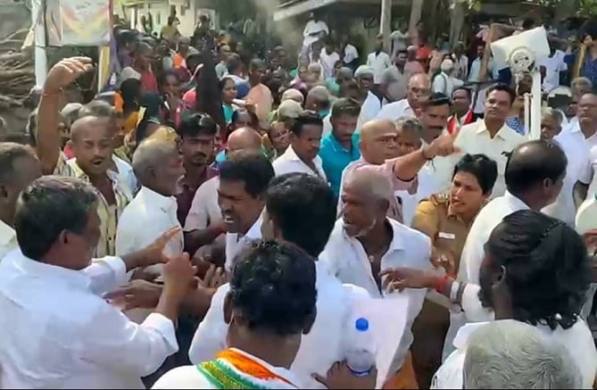 அப்பொழுது பாமக நிறுவனர் ராமதாஸ் தனது தந்தைக்கு மருத்துவ உதவி செய்யாததால் தான் உயிரிழந்ததாக குற்றம்சாட்டி பேசியதாக கூறப்படுகிறது. இதை அறிந்த பாமகவை சேர்ந்த சிலர் திடீரென பிரச்சார வாகனத்தில் முன்பு வாக்குவாதத்தில் ஈடுபட்டு கைகலப்பில் ஈடுபட்டதால் பரபரப்பு ஏற்பட்டது.